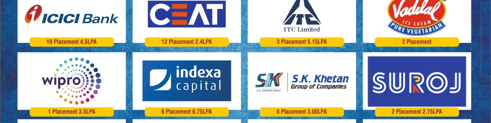 - Our students are being placed across a various sectors, throughout the length & breadth of the country and as well as overseas.